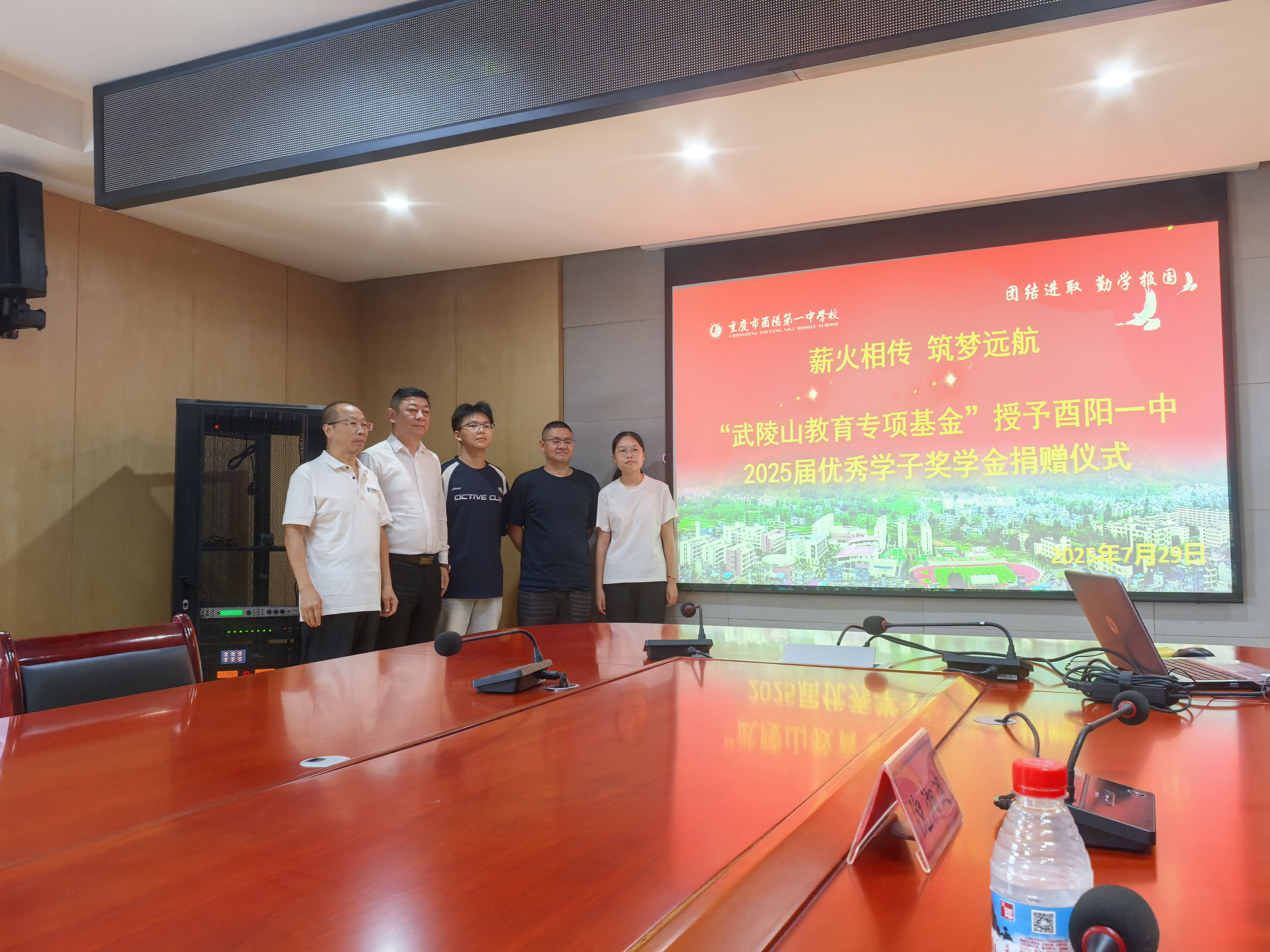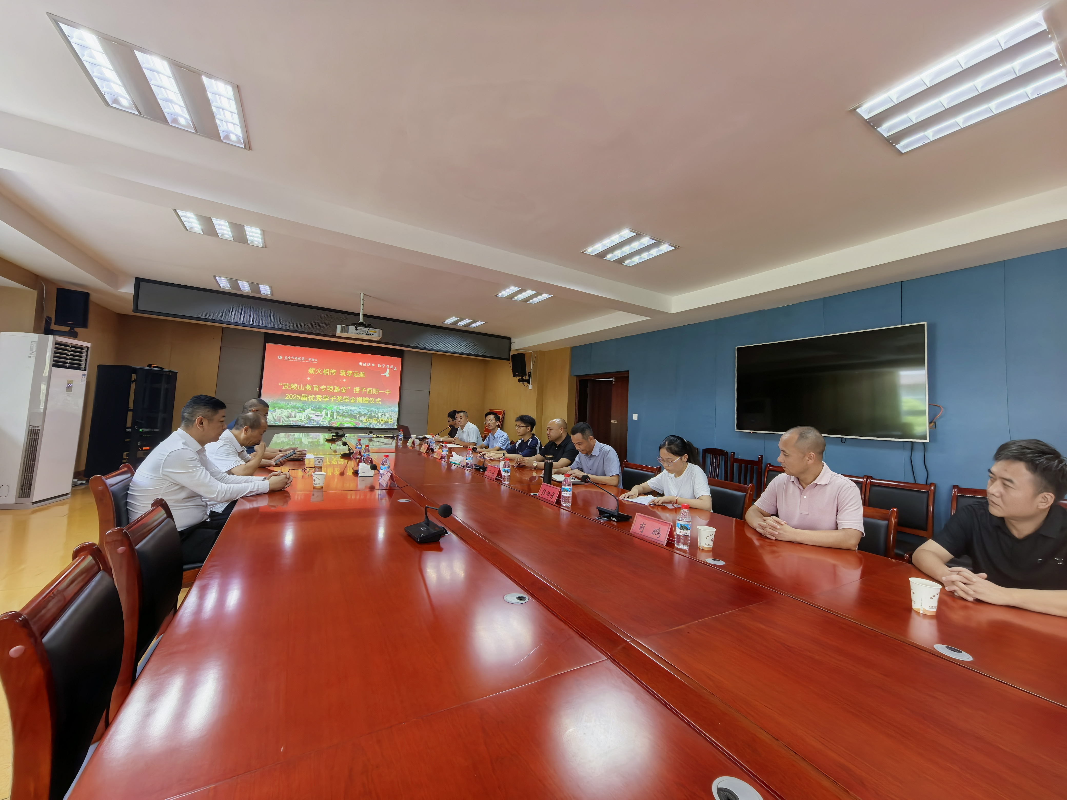 2025年7月29日下午3点,酉一中校园内爱心涌动,“武陵山教育专项基金”奖学金捐赠仪式在诚朴楼309室温情举行。参与此次捐赠仪式的有酉一中高94届优秀校友易炳顺先生、武陵山大酒店总经理冯勇、酉阳教育基金会副理事长段文宇、学校在家领导及部分教师和获得捐赠的冉镇翰、彭妍芳两位同学。